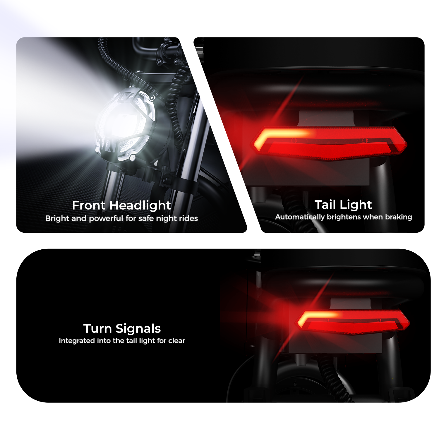 | Lights | Front light and red tail light and turn lights |